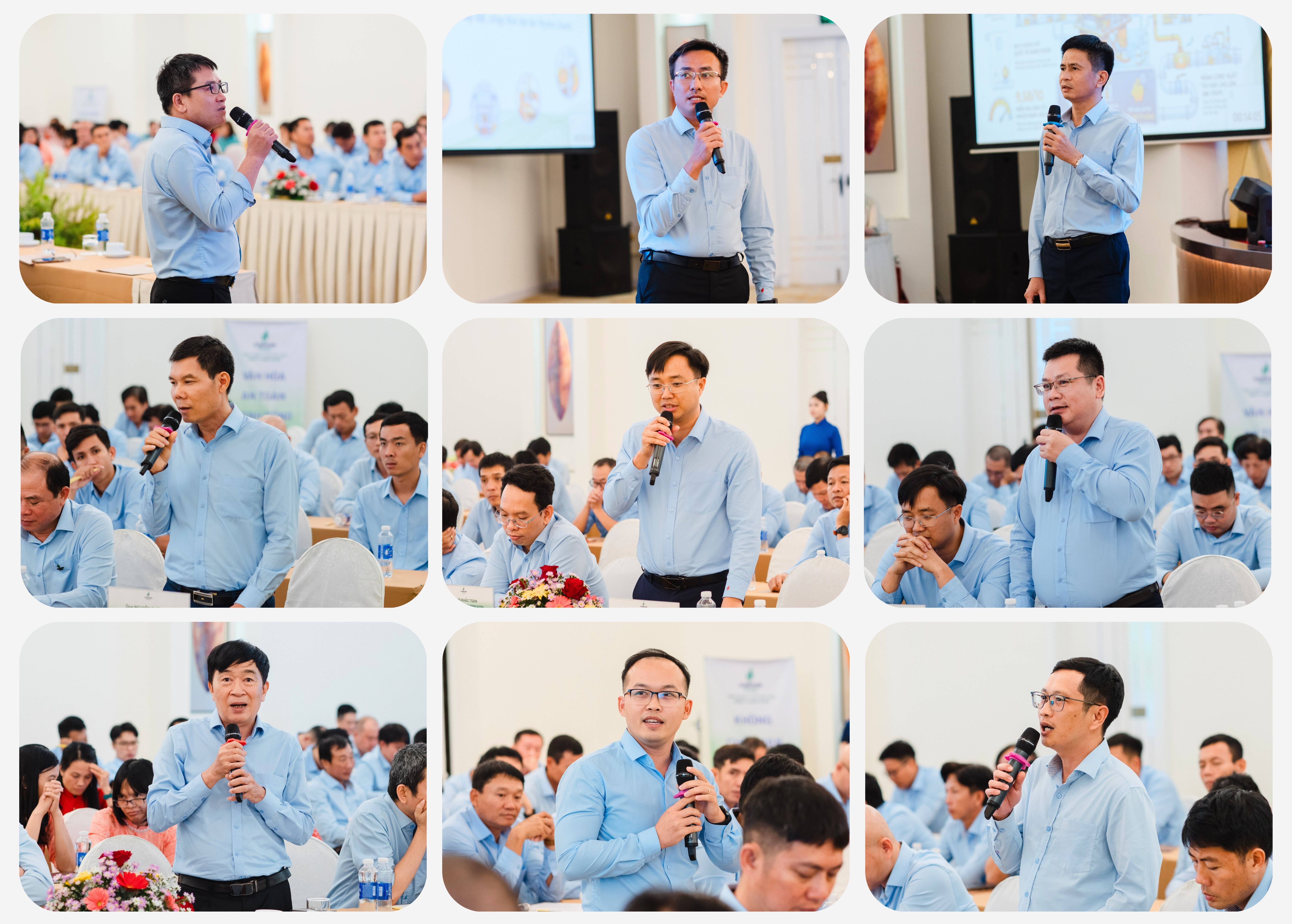 Tại Hội nghị, nhiều tham luận và ý kiến chuyên sâu, tập trung phân tích các sự cố và tình huống nearmiss tại các công trình được trình bày, từ đó chỉ ra nguyên nhân gốc rễ và các lỗ hổng trong kiểm soát an toàn. Những bài học thực tiễn này không chỉ giúp nâng cao nhận thức mà còn đề xuất các giải pháp cụ thể nhằm hoàn thiện hệ thống quản lý ATSKCLMT trong toàn Công ty.