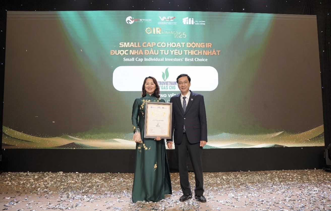 Không chỉ khẳng định uy tín và nỗ lực minh bạch thông tin, thành tích này còn ghi nhận bước tiến mới của PV GAS CNG trong chiến lược phát triển bền vững, nâng cao giá trị cho cổ đông và cộng đồng nhà đầu tư. PV GAS CNG được vinh danh ở hai hạng mục quan trọng: Doanh nghiệp Small Cap được nhà đầu tư cá nhân yêu thích nhất 2025 và Doanh nghiệp Small Cap được các định chế tài chính đánh giá cao nhất 2025.